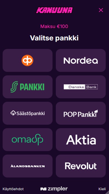 خيارات الخدمات المصرفية في Kanuuna Casino