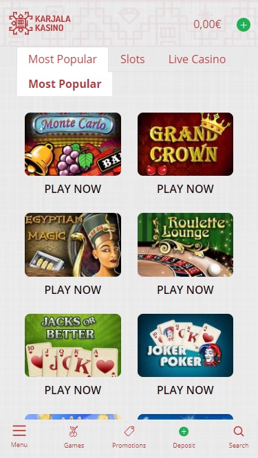 بالإضافة إلى ألعاب الكازينو القياسية، يقدم كازينو Karjala للاعبيه كازينو مباشر كامل يتضمن 40 لعبة يتم بثها مباشرة وتقديمها للاعبين.
