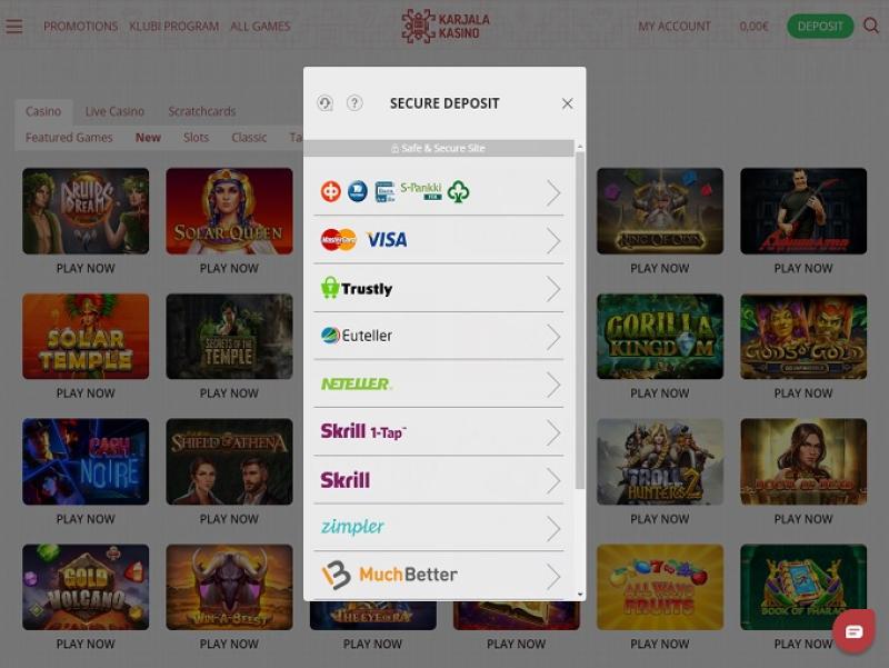 خيارات الخدمات المصرفية في Karjala Kasino