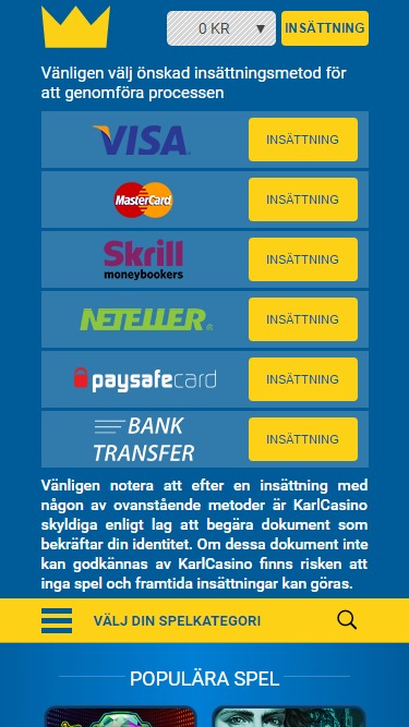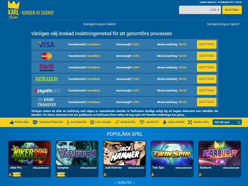KarlCasino هو موقع مراهنات عبر الإنترنت افتتح أبوابه في عام 2014 وتديره شركة L&L Europe Ltd. يخدم الكازينو سوق المراهنات السويدي، ويقدم ألعابًا من Net Ent، والتي عندما تجتمع مع أوقات الدفع السريعة وشروط المكافآت الممتازة، تجعل KarlCasino موقع مراهنات ممتازًا.معلومات الكازينو