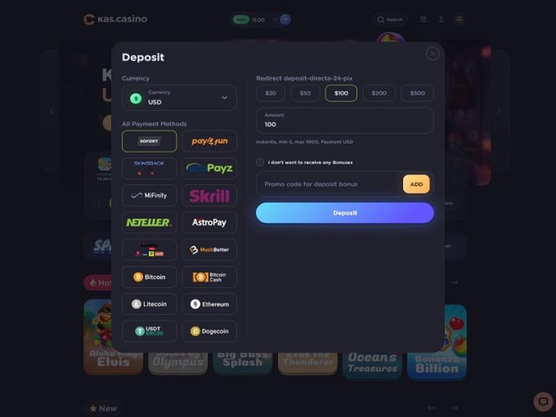 إجراء المعاملات المالية في kas.casino سهل وبسيط. يدعم الكازينو مجموعة واسعة من طرق الدفع الموثوقة ، بما في ذلك بطاقات الإيداع والائتمان، والمحافظ الإلكترونية، والتحويلات البنكية، وخيارات الدفع بالعملات المشفرة.