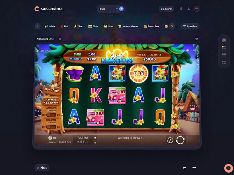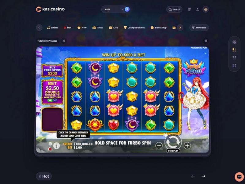 عند زيارتنا، كانت مكتبة ألعاب ماكينات القمار في كازينو kas.casino تضم حوالي خمسة آلاف عنوان. هذه المجموعة الضخمة مختارة بعناية، وتحتوي على أنواع مختلفة من ألعاب القمار بآليات جذابة، وأنظمة مكافآت، وتشكيلات بكرات متنوعة.
