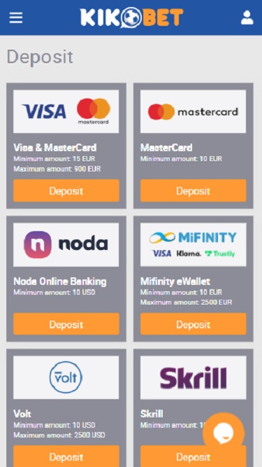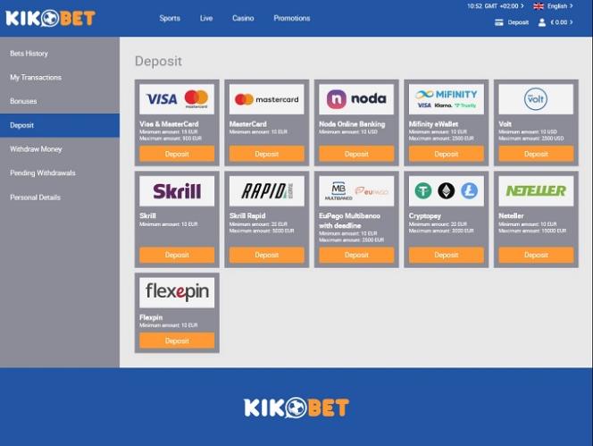خيارات الخدمات المصرفية في KikoBet Casino
