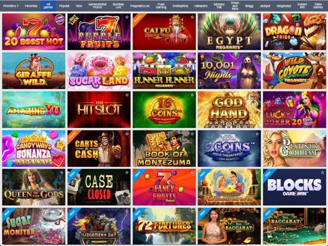 ميجاوايز: ميجاوايز وايلد بورتالز، ميجاوايز بيج باد وولف، ميجاوايز إيسترن إميرالدز، ميجاوايز وايلد ويفز، أبولو بايز، ميجاوايز بيف لايتنينج، ميجاوايز جولد، ميجاوايز راسبوتين، ميجاوايز فيجاس، ميجاوايز كاندي وايز بونانزا 3، ماكس 2، ميجاوايز وايلد ديك رومي، ميجاوايز علي بابا لاك، ميجاوايز أمازون آيلاند، ميجاوايز سحر العفاريت، ميجاوايز وايلد كويوت، ميجاوايز جيمز إنفيرنو، بيج باد بيسون، ميجاوايز ذا ويش ماستر، ميجاوايز أتلانتس، ميجاوايز مصر، ميجاوايز ماجيك باورز، دانجر هاي فولتاج، كريسماس بونانزا، هدايا الحظ، ميجاوايز وايت رابيت، جولدن كاتش، إكسترا تشيلي ميجاوايز، من يريد أن يصبح مليونيرًا ميجاوايز، ذا ريس، ميجاوايز بونانزا، بافالو مانيا ميجاوايز، بلو ساكرز ميجاوايز، ريسك ميجاوايز، ديناميت ريتشز ميجاوايز، توين دولاربين ميجاوايز، جولدن ليبركون ميجاوايز، بايرتس Plenty Megaways، وMystery Reels Megaways، وGonzo's Quest Megaways، وWell of Wilds Megaways…