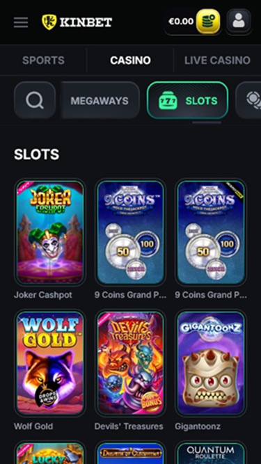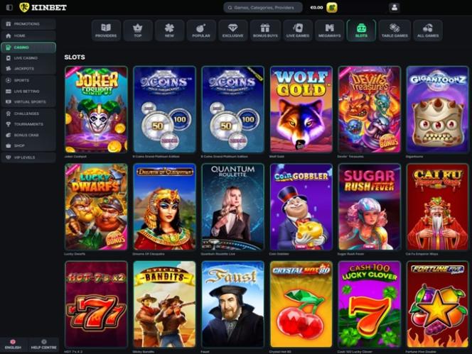 سيستمتع اللاعبون الذين يبحثون عن موقع مقامرة يضم قائمة واسعة من ألعاب السلوتس بأموال حقيقية بوقت رائع في Kinbet. تقدم هذه العلامة التجارية تشكيلة واسعة من ألعاب السلوتس وتُحدّث قائمتها بانتظام. جرّب بعضًا من هذه الخيارات الشائعة للاعبين: