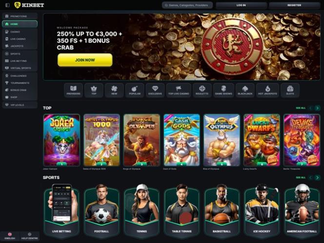 Kinbet موقع مراهنات حديث يقدم للاعبيه قائمة واسعة من ألعاب الكازينو وخيارات المراهنات الرياضية. يهدف إلى توفير تجربة مراهنة متكاملة مع ماكينات القمار، والموزعين المباشرين، وألعاب الطاولة. مع تركيزه الكبير على تنوع الألعاب، وتوافر العملات المشفرة، وخطة ترويجية ضخمة مع مكافآت، نعتقد أن الكثيرين سيُقدّرون جميع خيارات الترفيه التي يقدمها هذا الموقع.