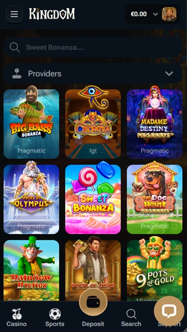 على سبيل المثال، يتميز كازينو Kingdom بمجموعة كبيرة من موفري البرامج، حيث حصلت العلامة التجارية على تراخيص من أكثر من 40 مطورًا فريدًا، معظمهم معروفون بتفانيهم في إنشاء ألعاب مثيرة مليئة بالميكانيكا والميزات والموضوعات الفريدة.