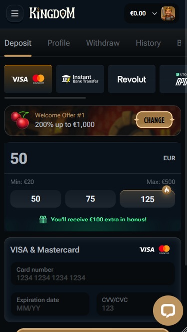 خيارات الخدمات المصرفية في Kingdom Casino