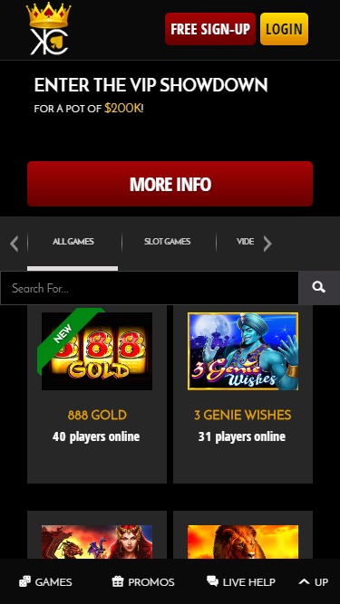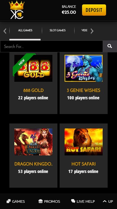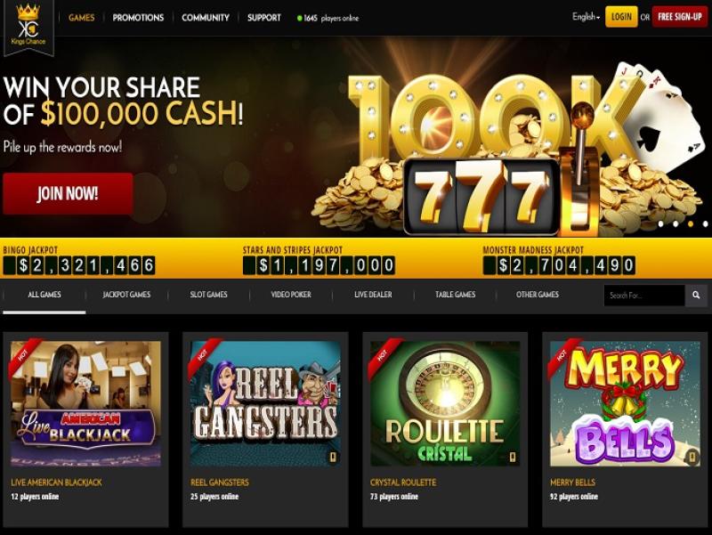 يقدم كازينو Kings Chance عددًا كبيرًا من ألعاب السلوتس، حيث يقدم الموقع ألعاب سلوتس ثلاثية الأبعاد من Betsoft، بالإضافة إلى ألعاب فيديو وسلوتس كلاسيكية متنوعة من TopGame. كما يقدم جوائز كبرى تصاعدية بملايين الدولارات للفوز بها.برنامج نقاط المنافسة
