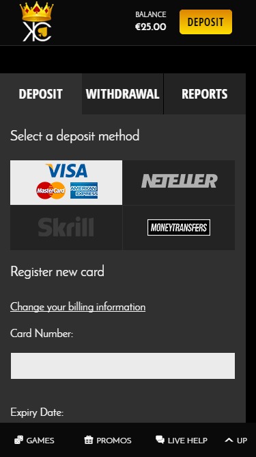لا يقدم كازينو Kings Chance نقاط مكافأة قياسية، لكنه يقدم استردادًا نقديًا على الأموال التي تم المراهنة عليها في الألعاب المختلفة.معلومات الترخيص