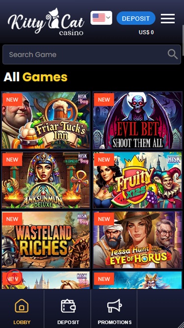 مهما كان جهازك - سواءً كان هاتفًا محمولًا أو حاسوبًا بشاشة أكبر - سيكون موقع Kitty Cat الإلكتروني متجاوبًا بنفس القدر، مما يتيح لك الاستمتاع باستكشاف عروض الكازينو من جميع الأجهزة وأنظمة التشغيل المتاحة. سنستعرض قريبًا مكتبة الألعاب بمزيد من التفصيل، فتابعونا.