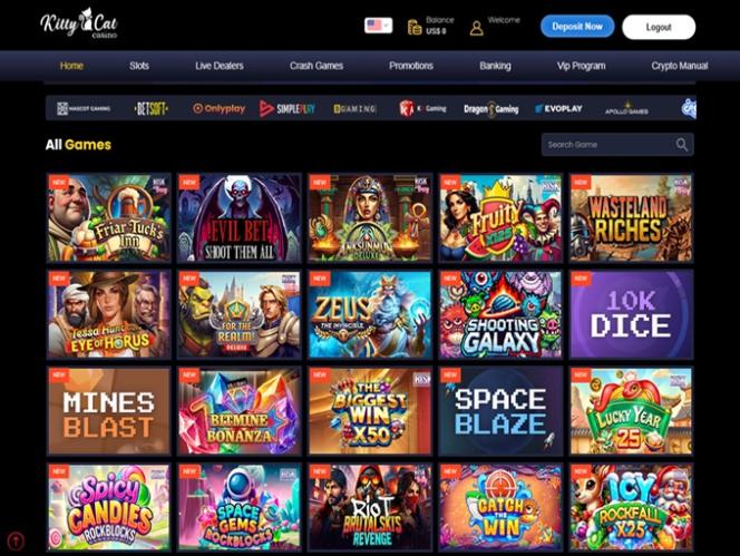 قرر كازينو Kitty Cat التعاون مع منتجي البرامج مثل Betsoft و BGaming و Dragon Gaming و Pragmatic Play وغيرهم.