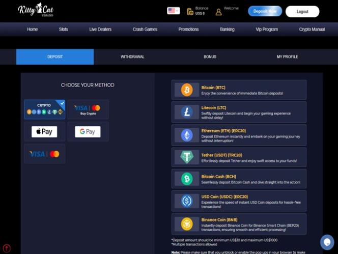 خيارات الخدمات المصرفية في Kitty Cat Casino