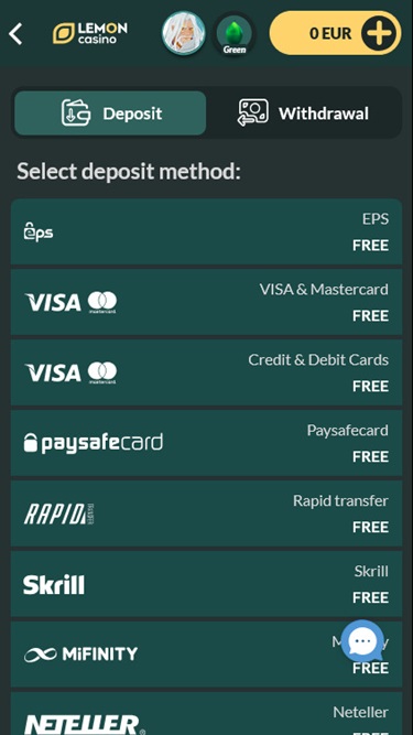 - يقدم كازينو ليمون عملية سحب واحدة أسبوعيًا بدون رسوم إدارية. كل طلب سحب لاحق يُفرض عليه رسوم.