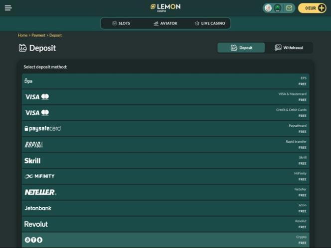 يقدم كازينو Lemon مكافآت ترحيبية ملحوظة للقادمين الجدد من بلدان معينة مثل كندا وسويسرا وألمانيا وبولندا والمجر والنمسا وسلوفينيا.