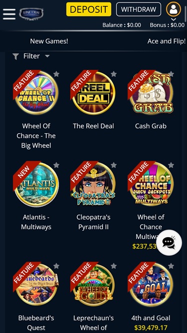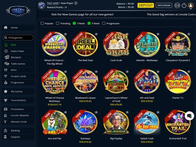 Lincoln Casino وهي أيضا موطن ل 9 الألعاب الأخرى المدرجة أدناه: