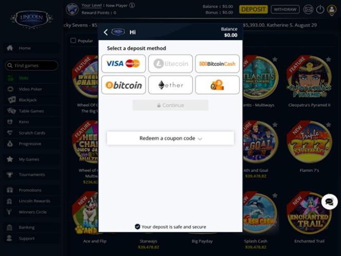 خيارات الخدمات المصرفية في Lincoln Casino