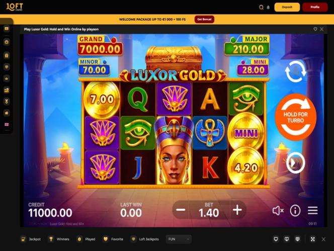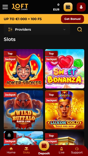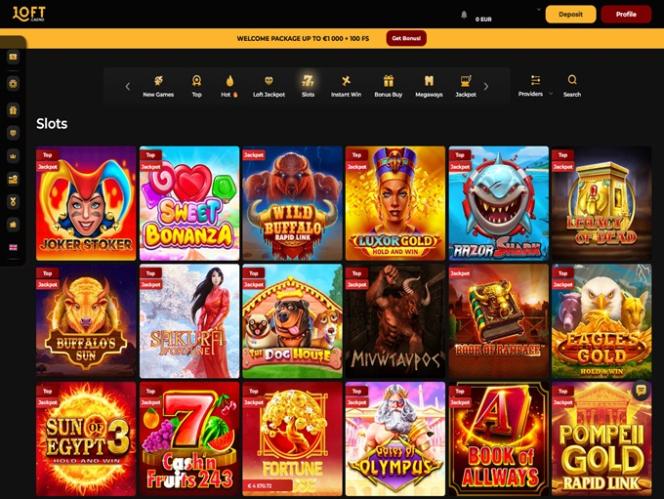 مكتبة ألعاب القمار الإلكترونية في كازينو لوفت واسعة جدًا. مع توفر العديد من مطوري البرامج، يمكن للاعبين الاختيار من بين تشكيلة واسعة من ألعاب ماكينات القمار. جرّب ألعاب Hit the Gold! Hold and Win، وSon of Egypt 3، وBuffalo Sun، وJasmine's Treasures، وChristmas Crash.