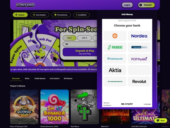 للإيداع والسحب، يمكن للاعبي كازينو لونكيرو استخدام عدة طرق دفع، بما في ذلك Zimpler و Pay' N Play و Nordea و Revolut . للأسف، لا يقبل الكازينو العملات المشفرة حتى وقت كتابة هذه المراجعة.