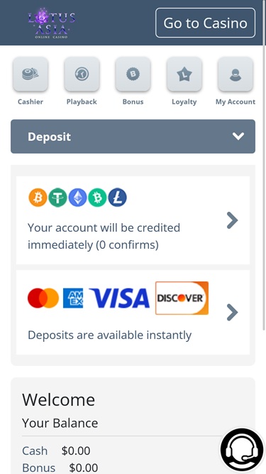 خيارات الخدمات المصرفية في Lotus Asia Casino