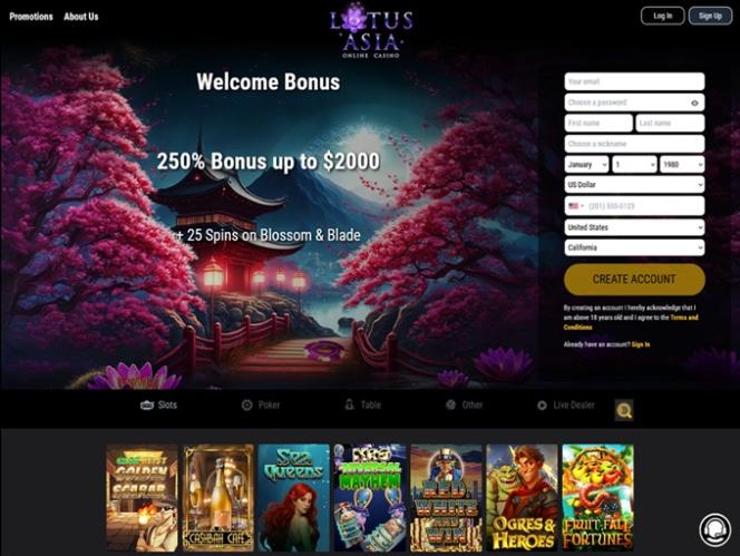 كازينو لوتس آسيا هو موقع مراهنات إلكتروني تأسس عام ٢٠١١، وتديره شركة جينيسيس تكنولوجي إن في من كوراساو. يقبل الكازينو اللاعبين من جميع أنحاء العالم، بما في ذلك الولايات المتحدة، ويقدم مجموعة واسعة من الألعاب لعملائه.