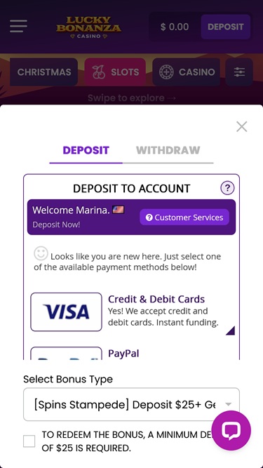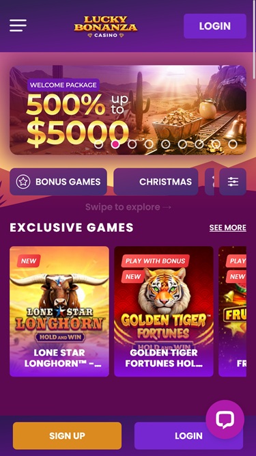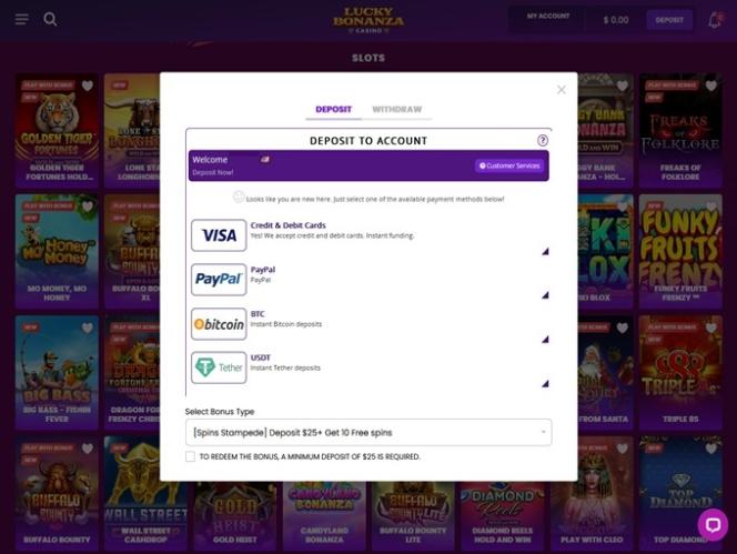 يُعدّ Lucky Bonanza كازينوًا إلكترونيًا مثيرًا للاهتمام، مُوجّهًا بشكل أساسي للاعبين من الولايات المتحدة وكندا. تجدر الإشارة إلى أنه في وقت زيارتنا، كان هذا الموقع يعمل بدون ترخيص للمقامرة.
