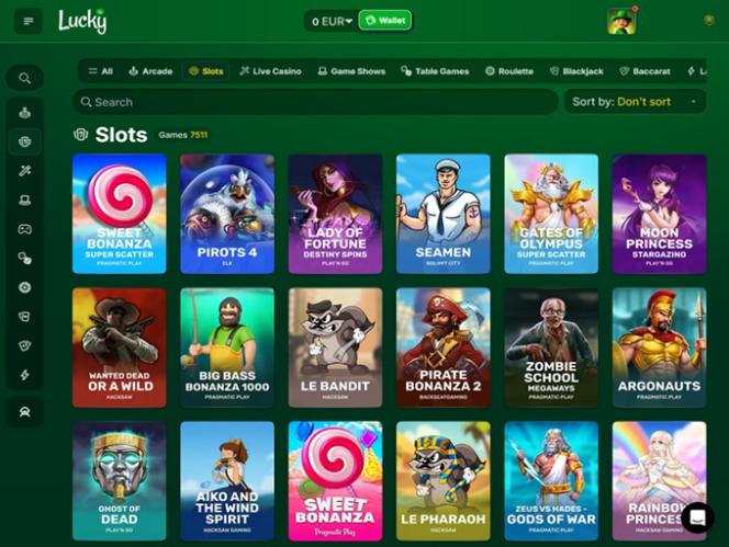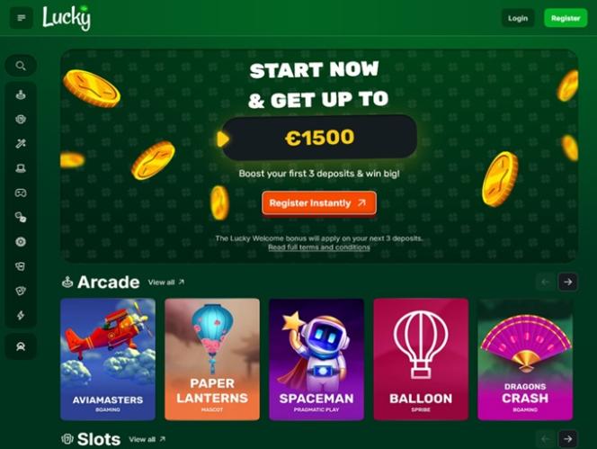 Lucky.co هو كازينو إلكتروني يدعو اللاعبين من كندا وألمانيا والنمسا وأيرلندا ونيوزيلندا إلى موقعه الإلكتروني، ويقدم مجموعة استثنائية من ألعاب الكازينو، بما في ذلك ماكينات القمار بأموال حقيقية، وألعاب الموزعين المباشرين، وألعاب الطاولة، وألعاب التكسير الفورية. يقدم الموقع مجموعة واسعة من الخيارات الممتازة، ويمكن للاعبين أيضًا الاستفادة من مكافأة ترحيبية مجزية للغاية وبرنامج إحالة.