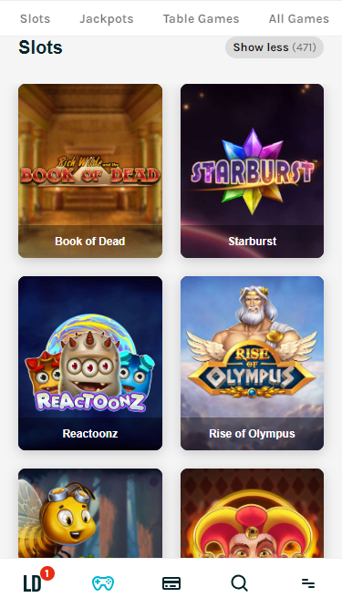 بعض عناوين الفتحات المميزة هي: Hyper Strike CASH Megaways، Wisdom of Athena، Royal Fortunator: Hold and Win، Gold Rush Express، 9 Coins Grand Platinum Edition، Power of Merlin Megaways، Cursed Seas، Big Catch Bass Fishing، 15 Coins، 3 Pots Riches: Hold and Win، Amazing Link Hades، 12 Coins، Razor Returns، Sun of Fortune، Fishin' Frenzy the Big Catch، 50 Red Hot 7 Clover Link، Giga Jar، Hot Slot: 777 Ca$h Out، Moon of Fortune، Magic Spins، Fish 'Em Up، Sweet Bonanza، Golden Fields، Buffalo Power: Hold and Win، Pirates Pub، Storm to Riches، Hypernova Megaways، Big Bamboo، Stormforged، Tippy Tavern، Piggy Riches Megaways، Floating Dragon - Dragon Boat Festival، Viking Runecraft: Apocalypse، Big Bass Bonanza، Joker Fire جنون، لعبة أكشن بوست أمبر آيلاند، جولد بليتز، قوة الشمس: سفاروج، مطلوب ميت أو لعبة برية، 9 بوتات من الذهب ميجاوايز، نايت هوت سبوتز، جيزة نايتس: امسك واربح، لوتشيميجوس، بيج باكس بانديتس ميجاوايز، بيج باس - امسك واربح، شوجر كريز بونانزا، جراني ضد الزومبي، وايلد باندولير، جالو جولد برونو ميجاوايز، وايلد فاير وينز إكستريم، ريترو تيبس، ثور إنفينيتي ريلز، كونتيسة كاش، وولف باور: امسك واربح، وايلد وايلد ريتشز ميجاوايز، رويال جوكر: امسك واربح، أميزينج لينك كاتاليروس، تومبستون ريب، مايتي تيتان لينك واربح، ريكتونز، كايوس كرو، هوت سلوت: 777 ستارز، أبولو - إله الشمس، بلود ثيرست، إرث الإنكا، سكاراب كاش ميجاوايز، كريزي ديجينز - كل شيء لي!، ذا غونيز، كلوب تروبيكانا، ستار جوكر. مملكة طروادة، مدينة السلام في سلام، بيض ساخن، عودة كونغ ميجاوايز، ديد كاناري، جيميكس، نابليون: صعود إمبراطورية، لاكي توينز لينك آند وين، هوت بيبر، ريك ومورتي ميجاوايز،