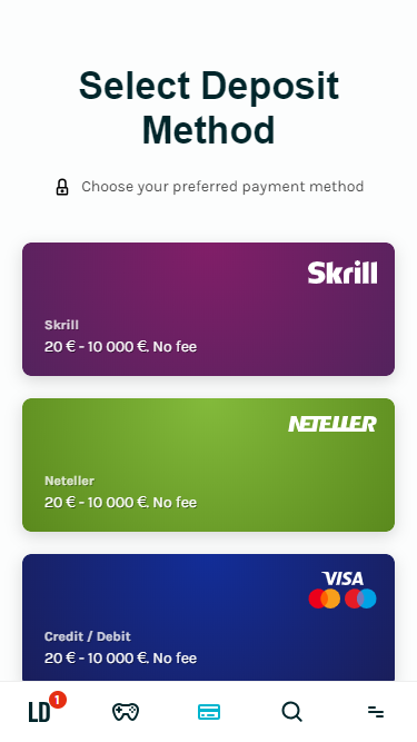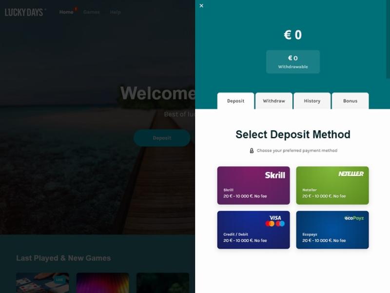 يمكن لكازينو Lucky Days أن يفتخر بكل حرية بالمجموعة الواسعة من طرق الدفع التي يمكن للمقامرين اختيارها لمعاملات الدفع الخاصة بهم.