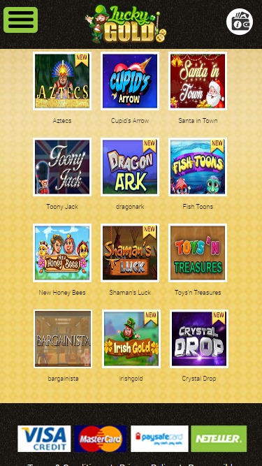 كازينو لاكي جولد يعمل بنظام Microgaming, EYECON, Games Global and Cozy Games ، وتُقدم ألعابه عبر منصة ويب تتيح اللعب عبر متصفح الويب. كما يدعم الموقع الهواتف المحمولة.خيارات الخدمات المصرفية في Lucky Gold