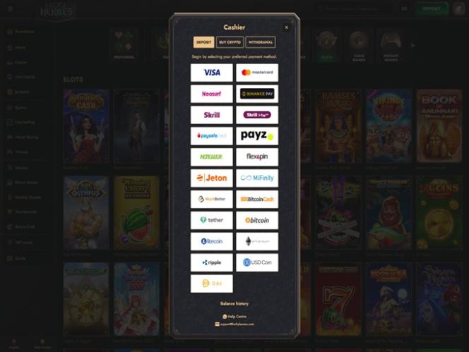 خيارات الخدمات المصرفية في Lucky Heroes Casino