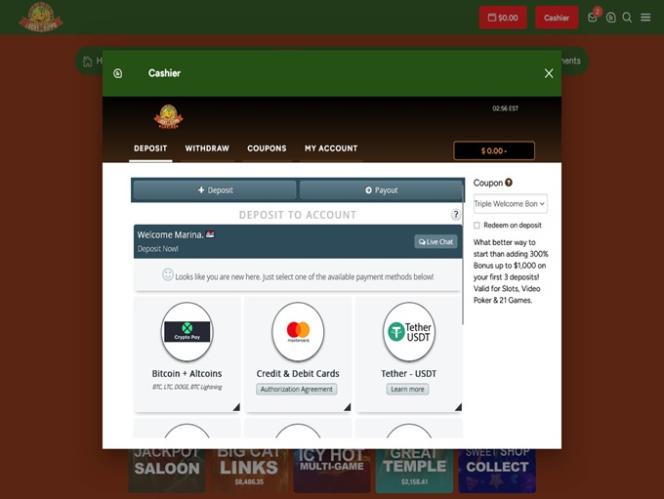 خيارات الخدمات المصرفية في Lucky Hippo Casino