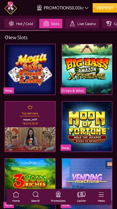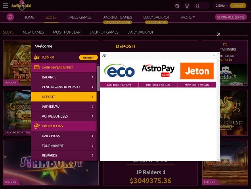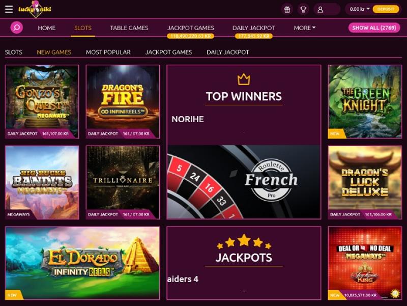 يُقدّم Lucky Niki عددًا هائلاً من ألعاب الفيديو سلوتس، والعديد منها من مطورين رائدين مثل Microgaming وNet Ent. سيسعد اللاعبون الذين يبحثون عن جوائز كبرى متزايدة بمعرفة أن هناك مجموعة جيدة من الجوائز الكبرى المتاحة، بالإضافة إلى ألعاب سلوتس للهواتف المحمولة.