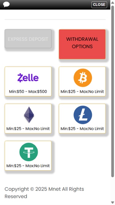 يرجى ملاحظة أن جميع طرق الدفع المتاحة تعتمد على بلد اللاعب. إذا كنت تفضل خيارًا معينًا وترغب في استخدامه للإيداع والسحب، فتأكد من إمكانية إجراء معاملاتك من خلاله في هذا الكازينو، وفقًا لقانون المقامرة الخاص بك.