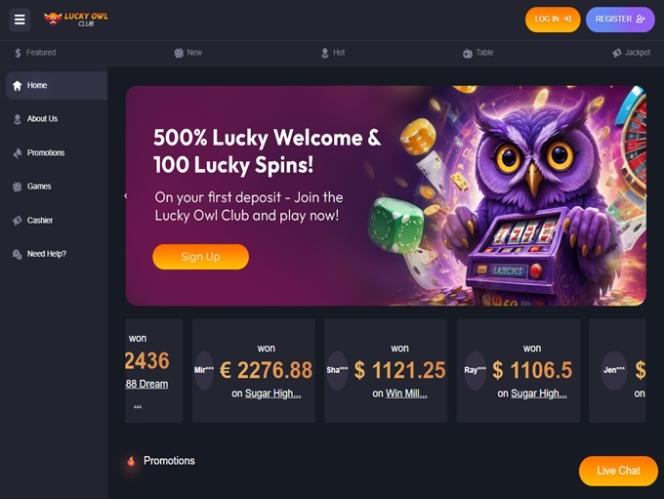 إذا قررت الانضمام إلى عالم Lucky Owl Club وتصبح جزءًا من مجتمعه، فيمكنك الاعتماد على مجموعة كبيرة من العروض الترويجية المثيرة والمكافآت الجذابة.