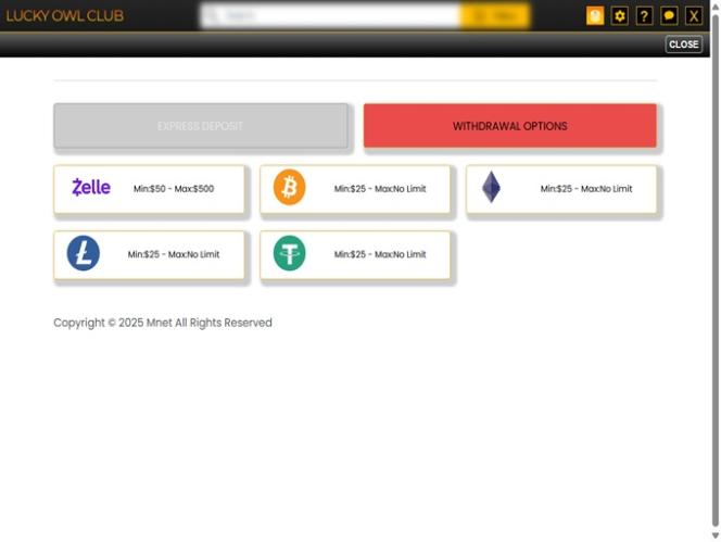 يوفر نادي Lucky Owl Club خيارات دفع ممتازة، كما أن المعاملات المصرفية فيه بسيطة ومباشرة. سواءً كان اللاعبون يودعون أموالهم أو يسحبونها، يوفر المشغل طرق دفع موثوقة وواسعة الانتشار .