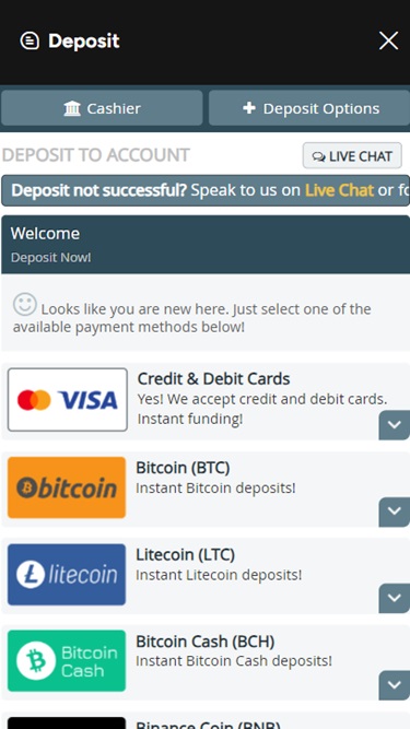 تتم عمليات الإيداع في كازينو لاكي ريد عبر بطاقات الائتمان والمحفظة الإلكترونية، بينما يمكن إتمام عمليات السحب عبر بطاقات الائتمان والتحويلات البنكية والمحفظة الإلكترونية والشيكات. أوقات الدفع معقولة، وتتمتع إدارة لاكي ريد بسجل حافل في إنجاز عمليات الدفع في وقت معقول.