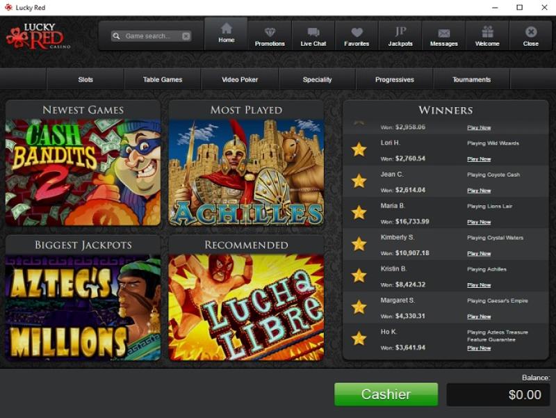 أُطلقت لعبة Lucky Red بواسطة برنامج Real Time Gaming . يمكن استخدام منصة الألعاب هذه عن طريق تنزيل برنامج أو إصدار فلاش Instant Play الذي يوفر عددًا محدودًا من الألعاب.