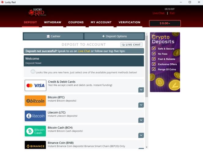 خيارات الخدمات المصرفية في Lucky Red Casino