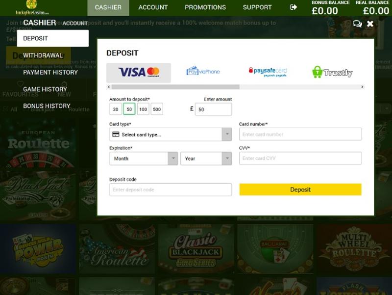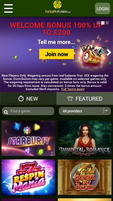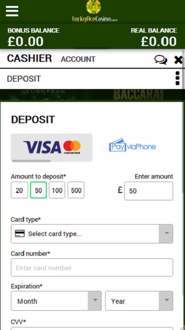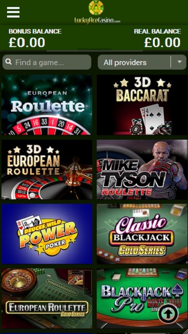 كازينو لاكي إيس مُشغّل بواسطة Microgaming, Net Entertainment, 1x2gaming, Big Time Gaming, ELK Studios, Evolution Gaming, EYECON, Genesis Gaming, lightningboxgames, Play'n GO, playson, Quickspin, Rabcat, Thunderkick, Vivo Gaming, Wazdan, BetConstruct, LuckyStreak, Skillzzgaming, Fantasma Games, Triple Edge Studios, Stormcraft Studios, Switch Studios, All41 Studios, TVBet, Gameburger Studios, Pulse 8 Studios, Super Spade Games, Games Global, 2by2 Gaming, Blueprint Gaming, Games Warehouse, NextGen, Tom Horn Gaming, WMS, Inspired Gaming, Genii, SG Interactive, Red7Mobile, CORE Gaming, Iron Dog Studio, Foxium, Betdigital, Just For The Win, PearFiction Studios, Slingshot Studios, Fortune Factory Studios, Gamevy, Crazy Tooth Studio and Alchemy Gaming ، الذي يُتيح اللعب الفوري لألعاب الكازينو. كما يُوفّر الكازينو موقع مراهنات للهواتف المحمولة يُتيح للمقامرين اللعب أثناء التنقل.خيارات الخدمات المصرفية في LuckyAce Casino