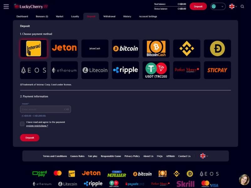 كما ذكرنا سابقًا، يدعم كازينو LuckyCherry77العملات المشفرة الشائعة وخيارات الدفع بها . مع ذلك، سيتمكن اللاعبون من تمويل حساباتهم وسحب الأموال أيضًا عبر بطاقات الدفع والمحافظ الإلكترونية الشائعة مثل Skrill وNeteller .
