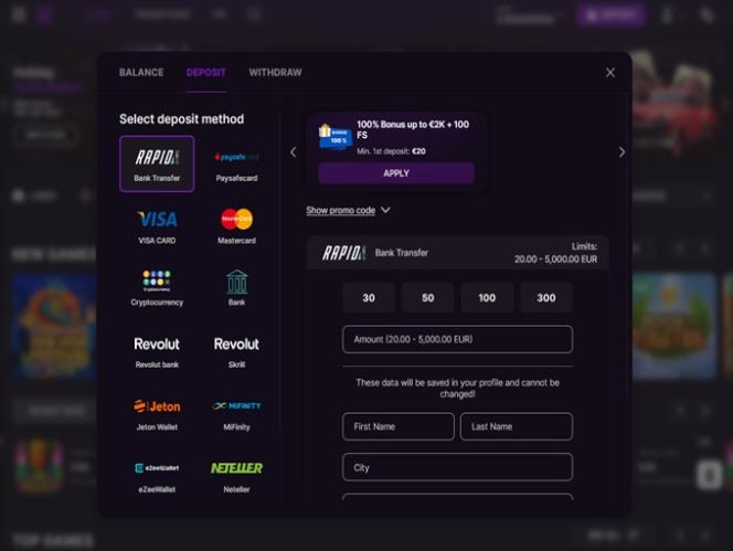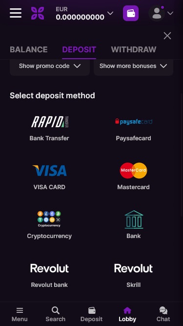 فيما يتعلق بالخيارات المصرفية، تتوفر طرق تقليدية وحديثة لإيداع وسحب الأموال في كازينو Luckyreels. بالنسبة للطريقة التقليدية، يوفر مالكو الكازينو طرقًا مثل Mastercard و Visa وSkrill و Neteller و Paysafecard و Neosurf وغيرها.