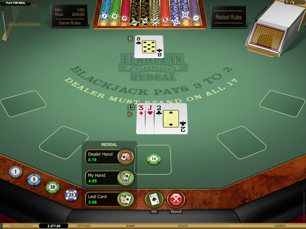 | European blackjack redeal | يقف | لا | من 9 إلى 11 | 1 | لا | نعم | لا | لا | 99.60% | 2 | لا |
