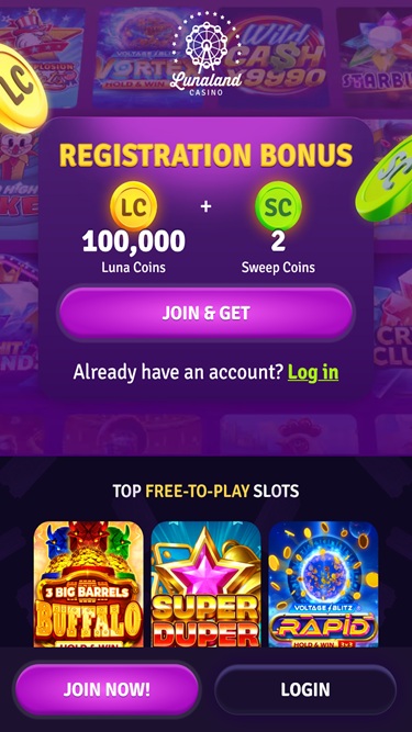 كما هو متوقع من كازينو مسابقات حديث، يقدم LunaLand مجموعة رائعة من العروض الترويجية والمكافآت ليستمتع بها لاعبوه. أولاً وقبل كل شيء، سيتمكن كل حساب جديد من الحصول على باقة ترحيبية سخية تتضمن مجموعة مجانية من عملات Sweeps Coins و Luna Coins.