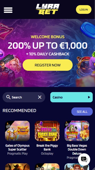 LyraBet هو موقع كازينو ومراهنات رياضية عبر الإنترنت ، مرخص ومنظم في إستونيا من قبل هيئة الضرائب والجمارك، وفي كوراساو من قبل هيئة مراقبة الألعاب (GCB). يركز هذا المشغل بشكل رئيسي على اللاعبين القادمين من كندا وألمانيا وفنلندا.