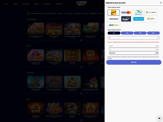 يتضمن LyraBet العديد من الطرق المصرفية، لذلك لن يواجه اللاعبون أي مشكلة في إجراء عمليات الإيداع والسحب، حيث يمكنهم استخدام خيارات موثوقة مثل التحويلات المصرفية، و Neteller ، وRevolut ، و Skrill ، والمحافظ الإلكترونية الأخرى، وبطاقات الدفع الشهيرة، وخيارات العملات المشفرة المتنوعة.