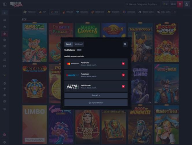 كازينو مافيا هو موقع مراهنات رياضية ضخم، يقدم مجموعة مذهلة من ألعاب الكازينو، بما في ذلك ماكينات القمار بأموال حقيقية، وألعاب الموزعين المباشرين، وألعاب الطاولة، وألعاب كراش، مع مجموعة واسعة من خيارات المراهنات الرياضية، والعروض الترويجية، والمكافآت. يقبل الموقع لاعبين من كندا ، ونيوزيلندا، وألمانيا، وفنلندا.