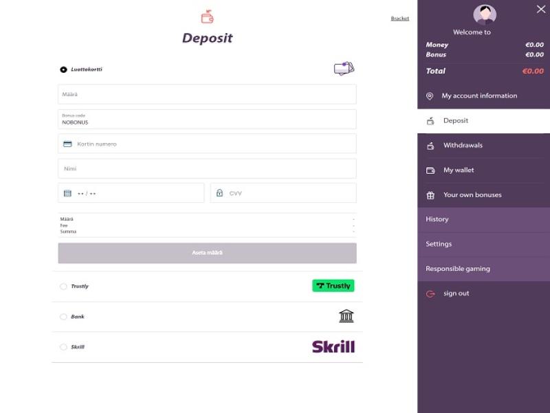 في ماما ميا بينغو، يُمكن للمقامرين تمويل حساباتهم عبر التحويل البنكي المباشر أو طرق الدفع الشائعة الأخرى، مثل بطاقات الدفع والمحافظ الإلكترونية. العملات المشفرة غير مقبولة في هذه العلامة التجارية للألعاب.