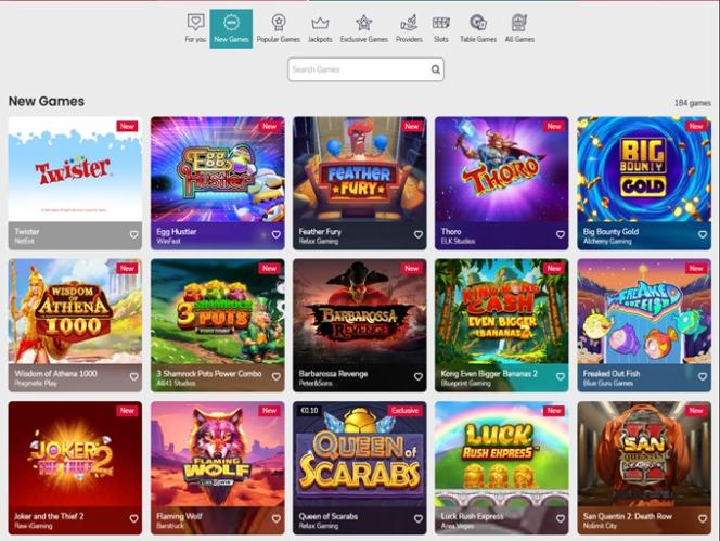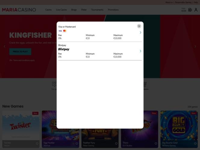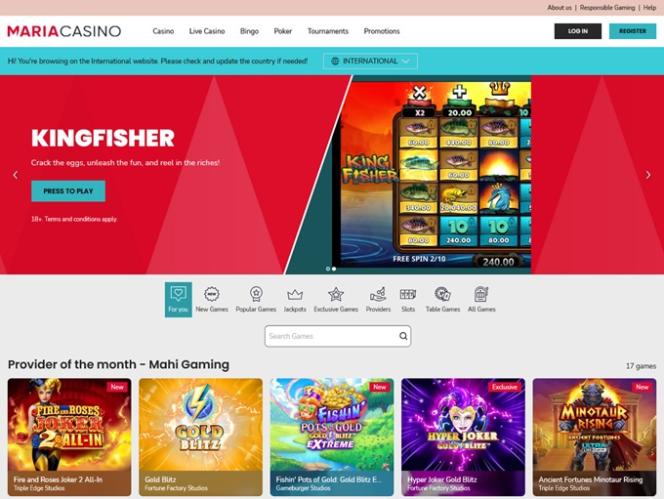 كازينو ماريا مدعوم من Microgaming, Net Entertainment, Playtech, 1x2gaming, Barcrest, Big Time Gaming, ELK Studios, Evolution Gaming, lightningboxgames, Novomatic, Oryx, Play'n GO, playson, Quickspin, Rabcat, Relax Gaming, Thunderkick, Yggdrasil, Realistic Games, Booming Games, Stakelogic, Pragmatic Play, Nolimit City, GAMING1, Red Tiger Gaming, IGT, Fantasma Games, Kalamba, Revolver Gaming, Skywind, Triple Edge Studios, Northern Lights Gaming, Electric Elephant Games, Pocket Games Soft, All41 Studios, Gluck Games, Gameburger Studios, Pulse 8 Studios, Neon Valley Studios, Golden Rock Studios, Shuffle Master, SpinPlay Games, GONG Gaming, Blue Guru Games, Buck Stakes Entertainment, Design Works Gaming, Games Global, Bally Technologies, bluberi, Blueprint Gaming, Greentube, NextGen, Push Gaming, WMS, Inspired Gaming, Gaming Realms, SG Interactive, Red7Mobile, Scientific Games, Reel Time Gaming, Iron Dog Studio, Foxium, Betdigital, Just For The Win, Storm Gaming Technology, PearFiction Studios, Wild Streak Gaming, Slingshot Studios, Fortune Factory Studios, Green Jade Games, 4ThePlayer, Gamevy, Crazy Tooth Studio, NetGaming, High 5 Games, ReelPlay, Alchemy Gaming, Rarestone Gaming, Black Pudding Games, Snowborn Games, Boomerang Studios, Hacksaw Gaming, Max Win Gaming, Gold Coin Studios, Bang Bang Games, SilverBack Gaming, Peter And Sons, Eurostar Studios, Aurum Signature Studios, Lucksome Gaming, Area Vegas, RAW iGaming and Indigo Magic ، مما يوفر لعملائه مكتبة ألعاب ضخمة. الكازينو متاح للعب عبر منصة ويب أو من خلال موقع مراهنات للهواتف المحمولة.