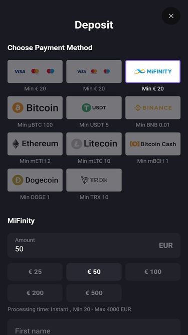 وأخيرًا وليس آخرًا، يضم هذا الكازينو الإلكتروني قسمًا خاصًا بألعاب السرعة الفورية، حيث يمكنك الاستمتاع بمجموعة رائعة من الألعاب البسيطة ذات الآليات المحكمة والجولات المثيرة. ننصحك بتجربة ألعاب مثل Plinko وPilot Piggy وAvion وTwist وChicken Train وPiggy Tap وChicken Road وAstronaut وAviator وCosmoX وGoal X وTop Eagle وNeed for X.